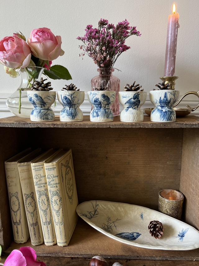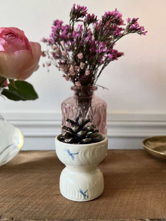 COQUETIER OISEAUX 3 - Coquetier Diabolo aux oiseaux de la manufacture de Gien - Terre de Fer