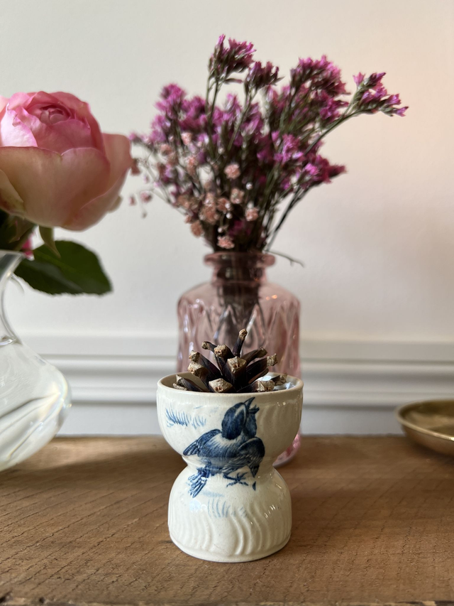 COQUETIER OISEAUX 4 - Coquetier Diabolo aux oiseaux de la manufacture de Gien - Terre de Fer