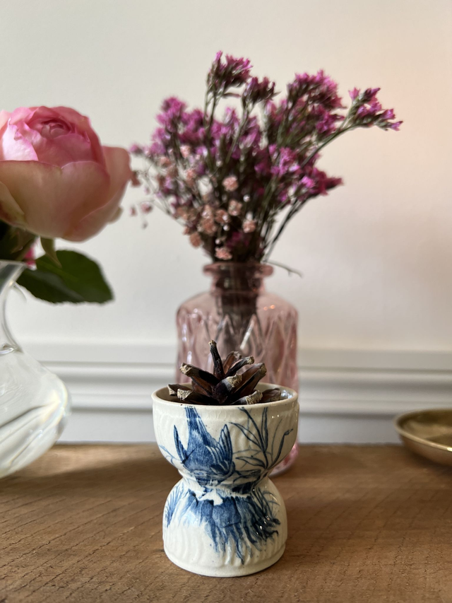🇬🇧 Lovely diabolo-shaped egg cup in ironstone from the French Gien factory, late 19th - early 20th century