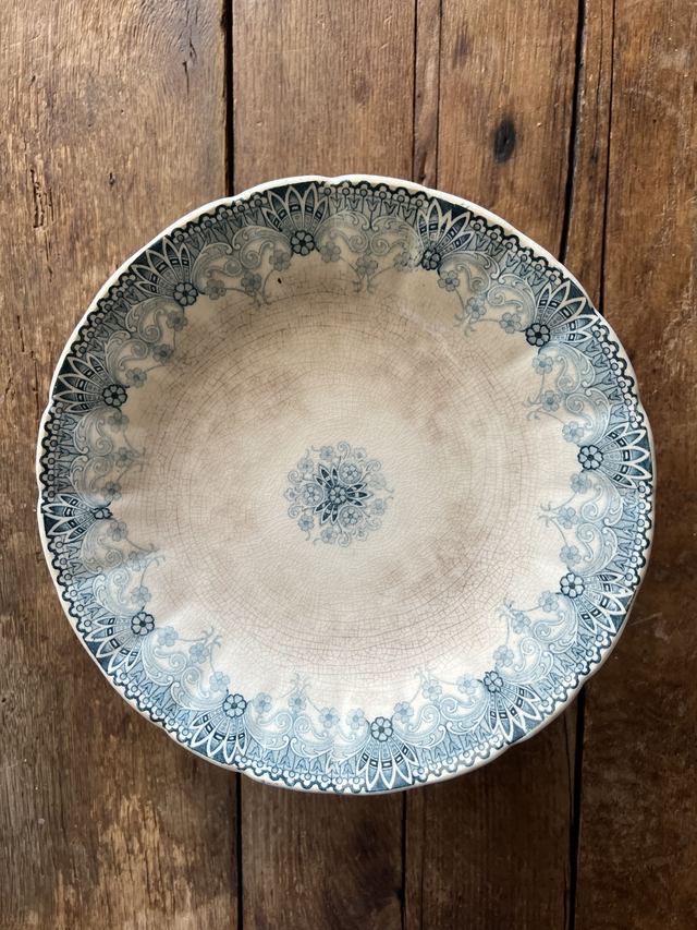 Signs of age: patina, discreet enamel crazing typical of ironstone, 2 tiny chips (see photos)