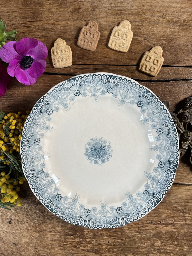 Sublime décor bleu gris sur pâte ivoire, piéd joliment décoré d'une frise