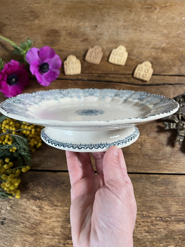 🇬🇧 Delicate transferware Henriette model pedestal dish ironstone with scalloped edgesfrom the French manufacturer H. Boulenger (Choisy le Roi)