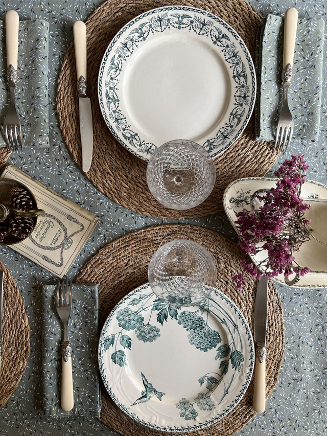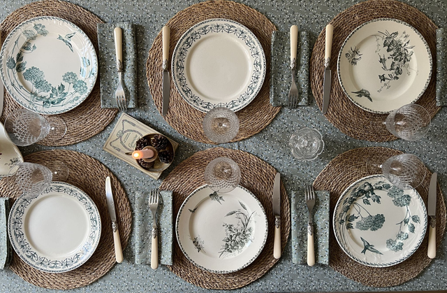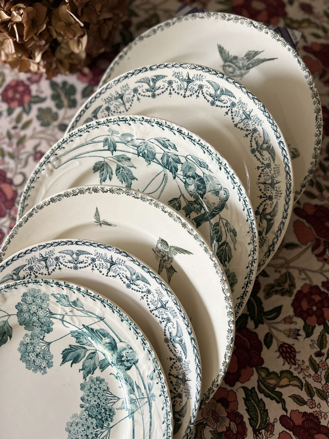 NAPLES - Suite de 6 assiettes plates aux oiseaux dépareillées - Terre de Fer