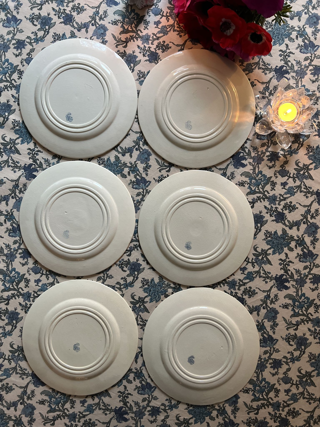 OISEAUX - Suite de 6 assiettes plates aux Oiseaux par la manufacture française de Gien - Terre de Fer