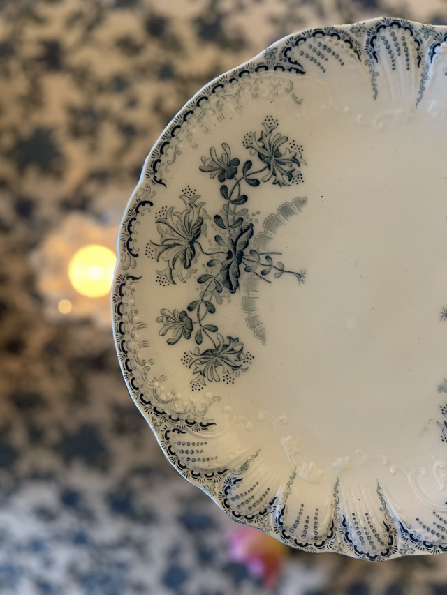 🇬🇧 Beautiful pedestal dish ironstone transferware by French manufactory Saint Amand & Hamage, Regence model