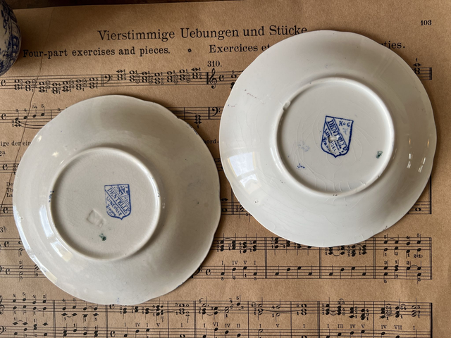 La dorure sur les anses et les bords chantournés des buvants et des sous-tasses est encore présente